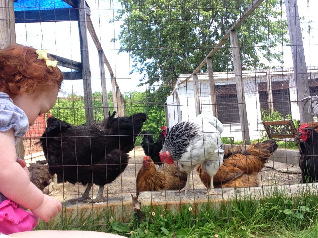 We got to feed the chickens. Mommy says when we move we can get chickens.