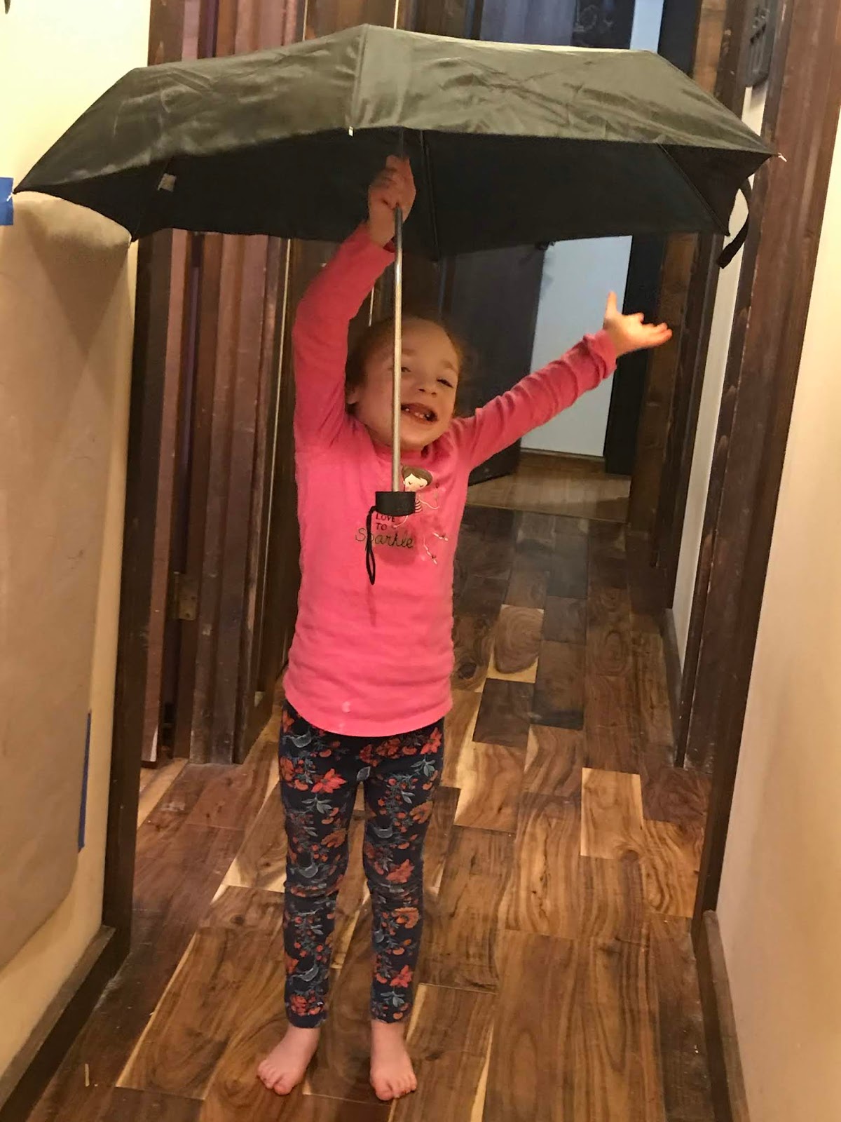 I made mommy and daddy laugh. I came out of my room dancing down the hallway with an umbrella