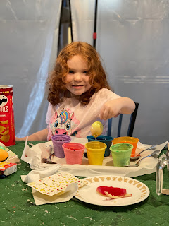 Our temporary kitchen is out of Reagan's room. We were lucky that Daddy is so handy and was able to set that up to begin with.